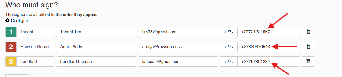 This means each signer must have a mobile number linked to their details when sending a document.